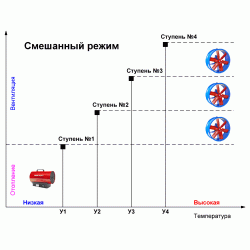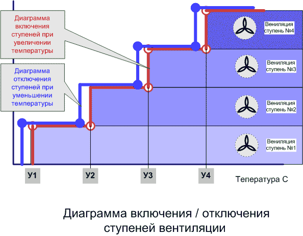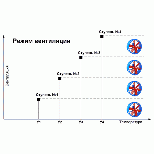 Serial connection of exhaust fans when the temperature rises inside the building.