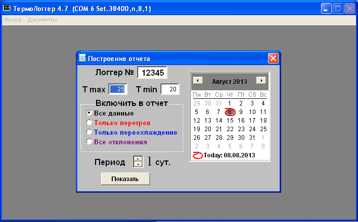 | Интервал записи показаний параметрических сенсоров | 1 мин. |